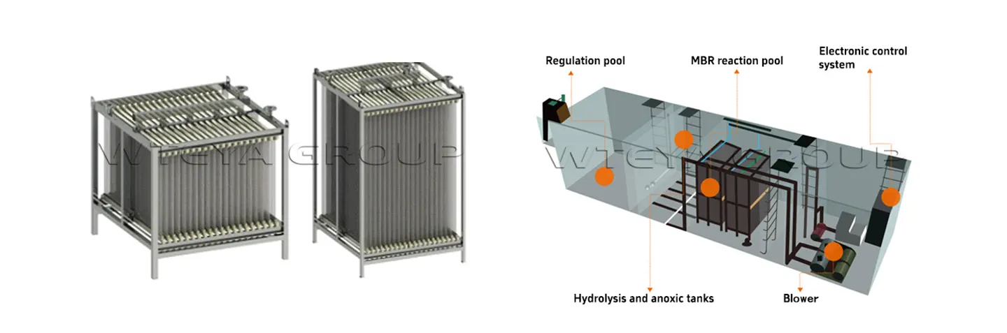 Hệ thống xử lý nước thải MBR trước tiên loại bỏ các chất ô nhiễm hữu cơ phân hủy sinh học trong bùn hoạt tính, sau đó sử dụng màng để tách ra nước tinh khiết và bùn hoạt tính.